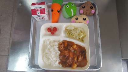 今日の献立は、ハヤシライス・キャベツのゆずドレッシング・さくらんぼ・牛乳です。