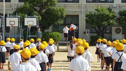 校長先生の梅雨時の天気についての話の後、看護当番から先週の反省と今週の目標についての発表会がありました。