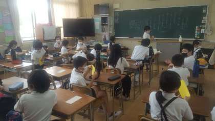 4年生は、学級活動でした。それぞれ一生懸命思いを書いていました