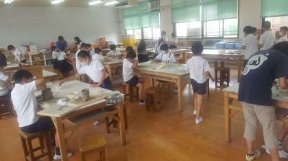 6年生は、図画工作の授業でした。粘土を使って陶芸にチャレンジしていました。