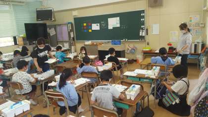 2年生は、図画工作の授業でした。絵の具を使って彩色していました。