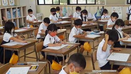 1年生は、国語の授業でした。ひらがなの書写をしていました。