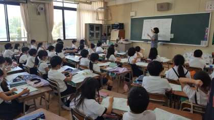 3年生は、音楽の授業でした。キラキラおひさまを学習していました。