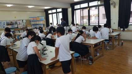 6年生は、理科の授業でした。顕微鏡で葉の気孔を観察していました。
