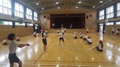 6年生は、体育の授業でした。バレーボールのトスの練習をしていました。