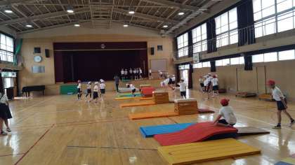 4年生は、体育の授業でした。台上前転にチャレンジしていました。