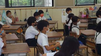 1年生は、先生の連絡を静かにしっかりと聞いていました。