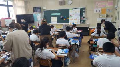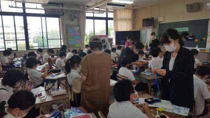 5年生は、家庭科の授業でした。おうちの人にも助けられながら小物を作っていました。みんな思い思いに、個性豊かな作品に仕上げていました。