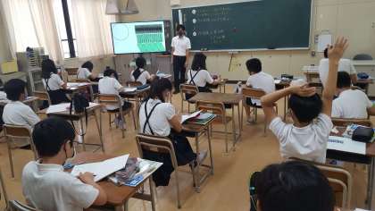 6時間目は、理科の授業でした。心臓の働きについて、2Ⅼのペットボトルの水を利用して考察していました。