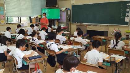 3年生は、国語の授業でした。この後の漢字テストに備えてドリルを見直していました。