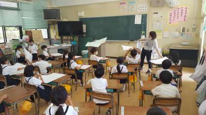 1年生は、図画工作の授業でした。画用紙にローラー等を使って模様をつけていきます。どんな作品になるのか楽しみです。