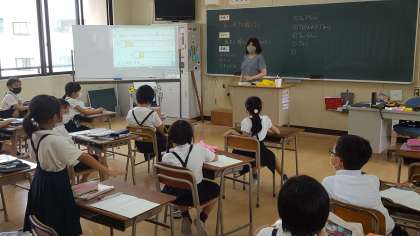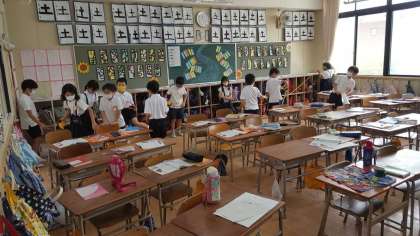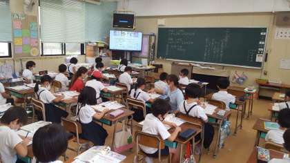 3年生は、習熟度別2分割で算数の授業をしていました。教室等、長い長さを調べていました。