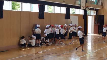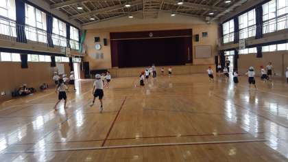 1年生は、体育の授業でした。講堂で行いました。熱中症もあって、途中で給水をとっています。