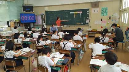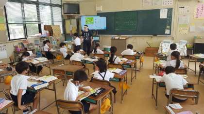 3年生は、外国語活動の授業でした。ランダムに書かれたアルファベットの中からクラス全員の名前を探していました。