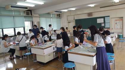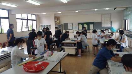 1学期最終の民族クラブの活動がありました。家庭科室で小物入れを作製しました。みんなそれぞれ包装紙を選んでオリジナルの作品を作りました。出来上がった作品は大切に使いましょう。