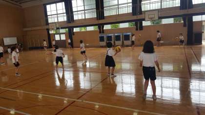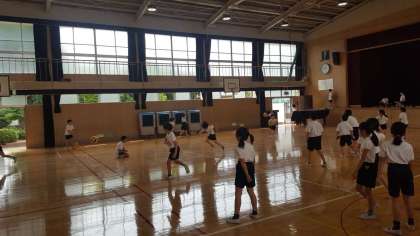 3年生は、学級活動でした。講堂でキャッチボールをしていました。ソフトバレーボールを投げていたので、取りにくかったようです。でも楽しんでいました。