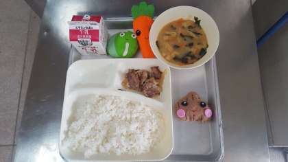 今日の献立は、豚肉のしょうが焼き・みそ汁・ごはん・牛乳です。
