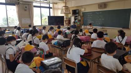 本日午後、給食終了後に終業式を行いました。子ども達・教職員を含めて初めてのことです。当初は、講堂でやる予定でしたが、講堂が暑すぎて急きょ放送で行うことになりました。
