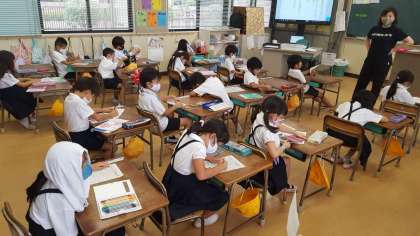1年生は、今週行われている、「手あらい・ハンカチのパーフェクト週間」のチェックシートを記入していました。