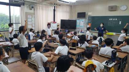 6年生は、理科の授業でした。テストをしていたので、邪魔にならないように静かに外に出ました。