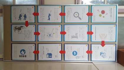 保健室前の掲示板には、新型コロナウイルスと熱中症対策に関する内容の掲示がされています。今1番気をつけないといけないことです。保護者の皆さんも、来校された際にはお読みください。