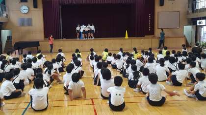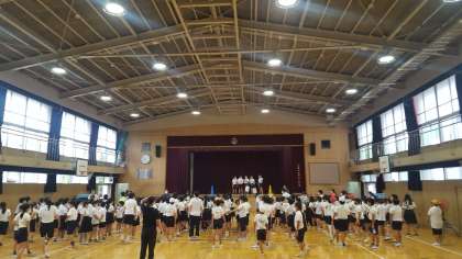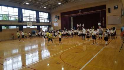 班対抗で、ボール運びをしました。班長さんが中心になって、みんなで協力してボールを運んでいました。楽しい集会になりました。