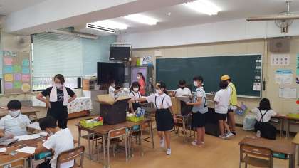 本日の6時間目に4・5・6年生で、明日の夏祭りの準備を行いました。