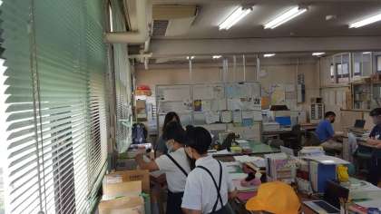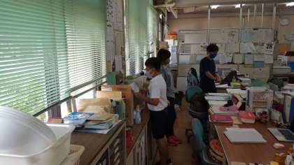 明け方の雨で運動場が使えず、放送で全校朝会を行いました。校長先生の話後に、看護当番から先週の反省と今週の目標についての話がありました。最後に、児童会からの連絡を行いました。