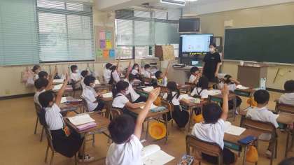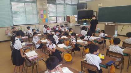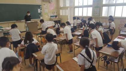 5時間目の授業の様子です。国語の授業でした。まずきちんと礼をしてから授業が始まります。「ことばあそびうたをつくろう」の単元の最初の学習でした。