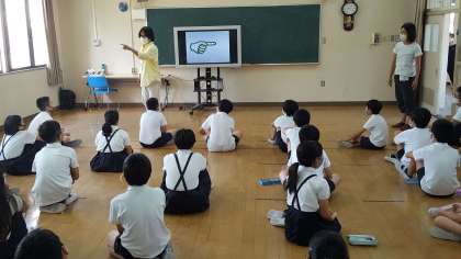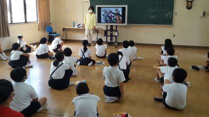 今日の外国語活動は、右・左の学習でした。子ども達は、映像を見てライト・レフト、ターンライト・ターンレフトと答えていました。瞬時に答える速さがすごかったです。