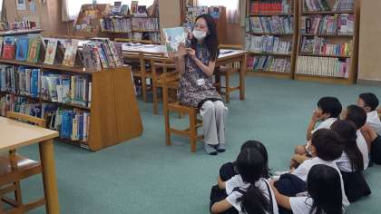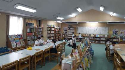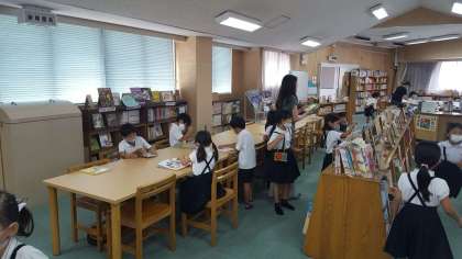 1年生は、図書の学習でした。図書の先生の「むしたちのうんどうかい」の朗読を聞きました。その後は本を借りたり、思い思いに本を読んでいました。