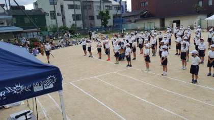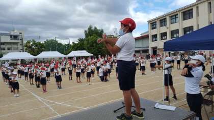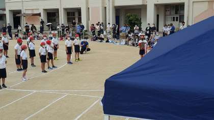 優勝旗・準優勝盾の返還を行い、児童先生の後プログラムが始まりました。