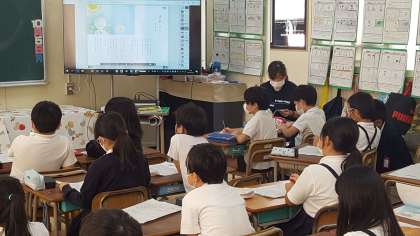 3年生は、国語の授業でした。創作した物語を発表していました。みんなの前で緊張しながら発表していました。