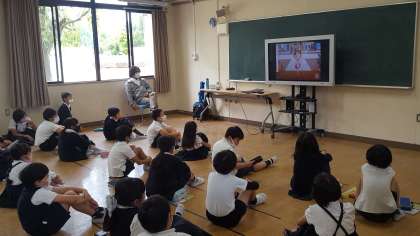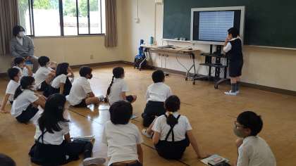 3年生は、英語の曲に合わせて、英語で歌っていました。耳から英語を学習していました。
