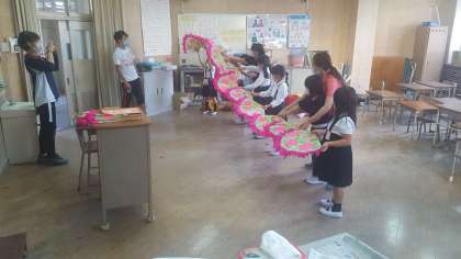 今日は、民族クラブの活動がありました。今日も男女別れて発表会に向けての練習をしました。少しずつリズムに合わせて、演奏できるるようになってきました。また女子は、気持ちを合わせてウェーブの練習をしました。