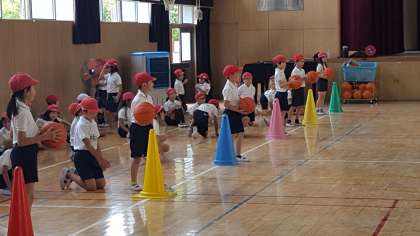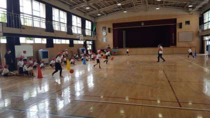 3年生も体育の授業で、区から派遣された講師の先生の授業を受けました。3年生はボールも使っていろいろな動きにチャレンジしていました。、「だるまさんがころんだ」にドリブルを取り入れた運動をしました。楽しそうでした。