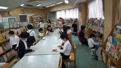 2年生は、読書活動でした。図書館で本を読んだり、借りる本を探していました。また、図書の先生の読み聞かせの時間もあり、熱心に楽しく聞いていました。