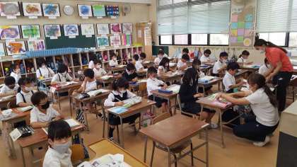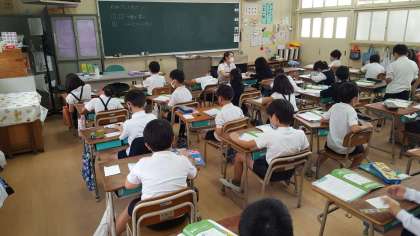 2年生は、算数の授業でした。三角形と四角形の単元の確かめの問題をしていました。
