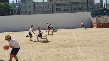 4年生は、体育の授業でした。リレーのバトン渡しの練習をしていました。ゲーム形式の練習を取り入れたり、タッチの練習をしていました。タイミングよく受け渡しができるといいですね。