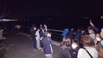 夕食後に、急きょ出かけることになりました。予定外のサプライズです。この後何が起こるのでしょうか?ヒント?岸壁にいます。