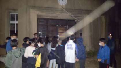 花火大会終了後、そのままナイトハイクに行きました。城跡と廃校になった小学校に行きました。暗いところは、怖かったです。