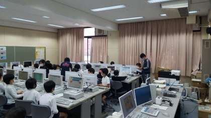 3年生は、国語「ローマ字」・算数「円と球」の学習の公開でした。パソコン教室で学んだり・教室でコンパスを使って授業を受けました。