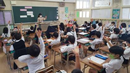2年生は、栄養教諭から食育の授業を受けました。「朝ごはんをたべよう」についての学習でした。朗読をしたり、ワークシートに記入したり、朝食メニューを考えたり、楽しく学びました。