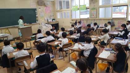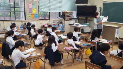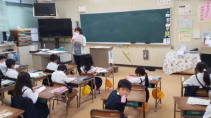 1年生は、生活科の授業でした。おもちゃランドに招待してくれた2年生にお礼の手紙を書いていました。みんな感謝の気持ちを込めて作成していました。