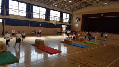 2年生は、体育の授業でした。跳び箱運動をしていました。