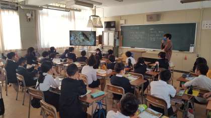 4年生は、理科の授業でした。秋の生物の様子を学習していました。NHKの番組を見ながら、様子を探っていました。