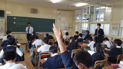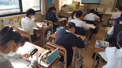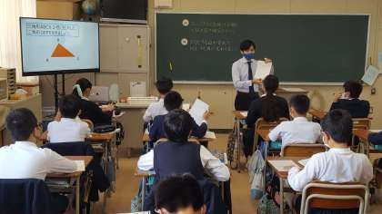 6年生は、算数の授業でした。この時間は、校内の授業研究会でした。子ども達は、たくさんの先生方が見る中で緊張感をもって授業を受けました。みんな作図を完成させ、がんばっていました。