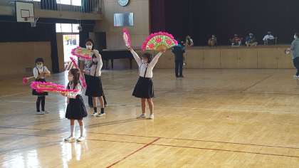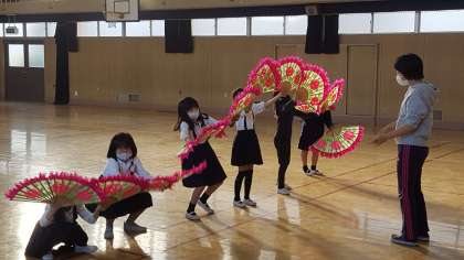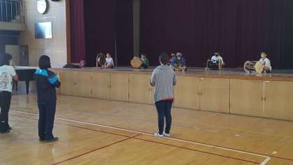 今日は、民族クラブの活動がありました。発表会に向けて講堂で練習をしました。