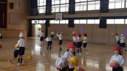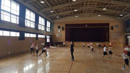 2年生は、体育の授業でした。講堂でボール使って運動をしていました。ボールを高く放り上げて、キャッチしていました。2年生にとってはこれが少し難しい。何度もすることで必ず上手になります。がんばりましょう。