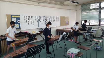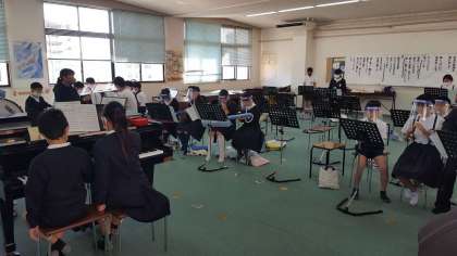 6年生は、音楽の授業でした。「千本桜」の合奏の練習をしていました。とても迫力のある演奏でした。発表会の時は、是非聞きに行きたいです。